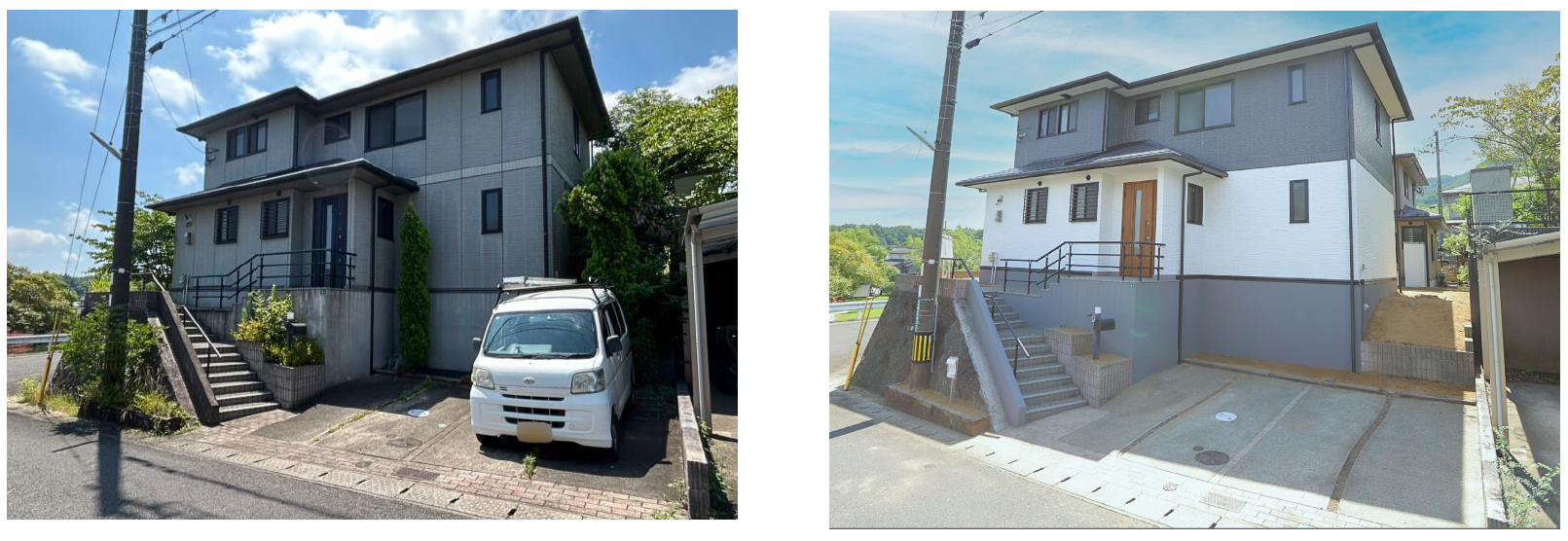 お家の顔である外壁を、白とグレーのツートーンで塗り替えました。
