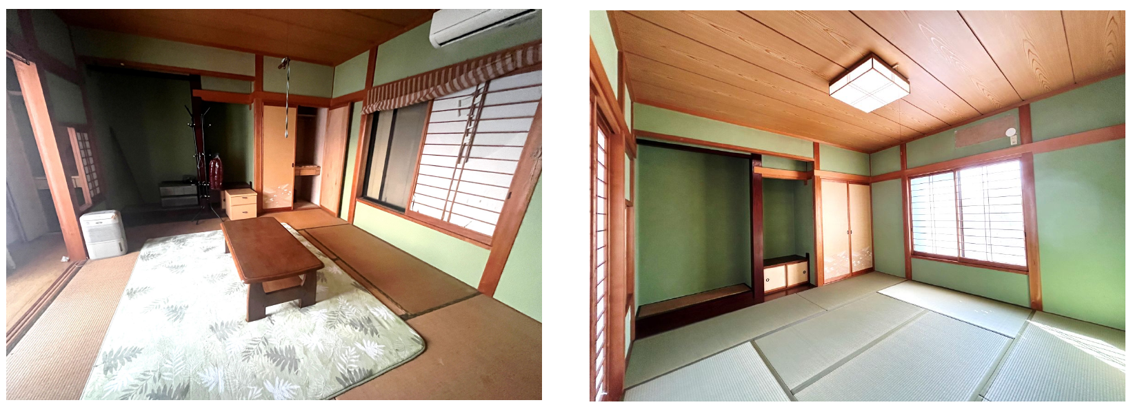 新しい畳は色鮮やかで、部屋全体が明るく感じられ、和の空間が一層引き立ちました。